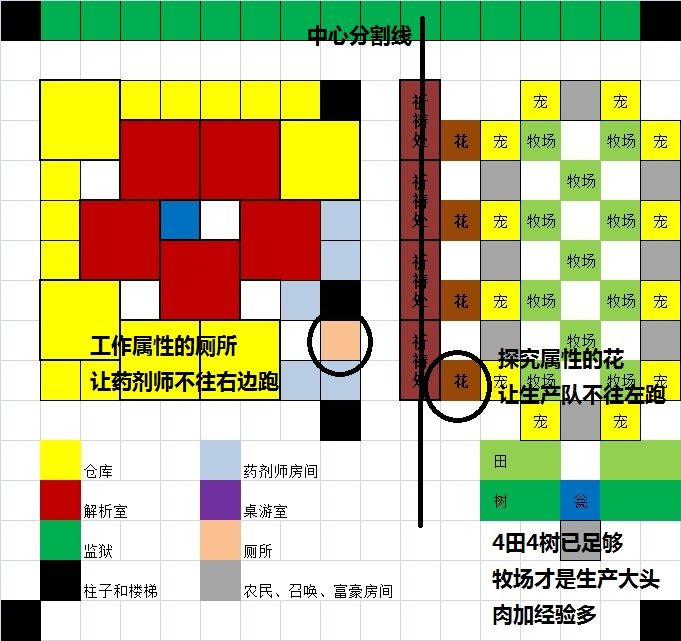 基本思路是仓库要桶路方便运送,解析室尽量藏在中间,避免外人靠近