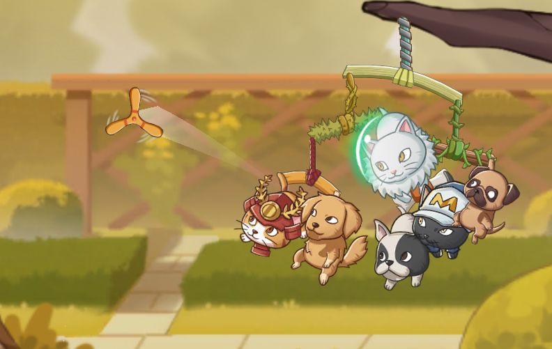 玩法简单来说就是1V1对战,收集不同种类的猫猫狗狗编队匹配,在战斗中利用小动物弹射出不同的弹药攻击对手,整体画风相当治愈,虽然有对战元素但失败后也不会带来太大的挫败感,确实能给人一种不在乎输赢就是玩的感觉。