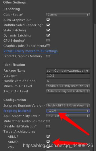 上架Play Store需要游戏支持64位,于是我们在unity里面设置为64位打包,如图