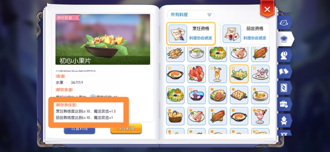 烹饪 和 品尝 都会解锁,建议第一次直接做和吃90个,因为貌似第一级送的