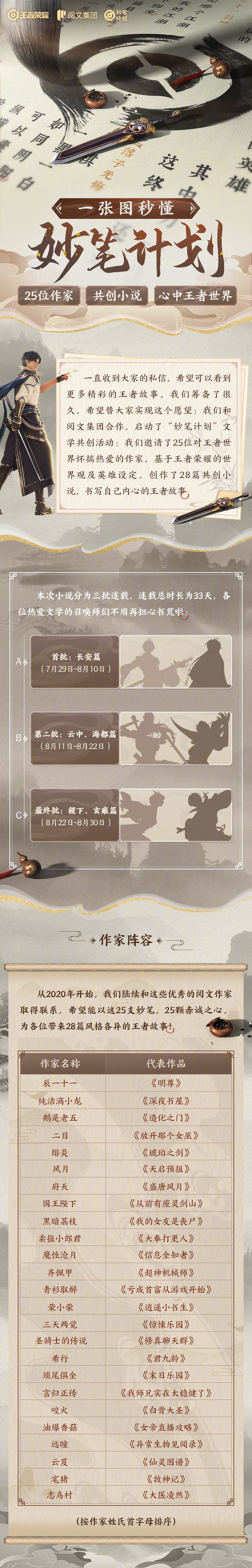 【妙笔计划】开启,王者荣耀共创小说首批——长安篇将于明日上线