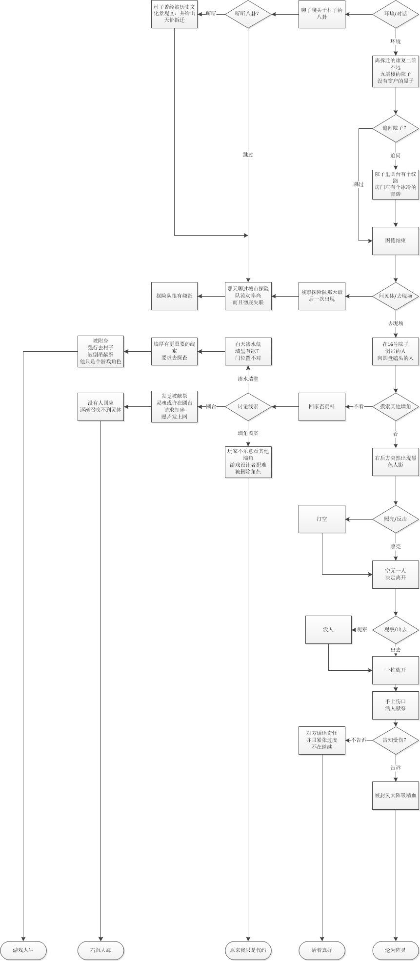 这个是退恶罡符咒的第四次探险的路线,目前基本上去了就是假结局,而且居然有我是代码这种结局哈哈哈,这个简直是我这种钻牛角尖的玩家的标准结局哈哈哈