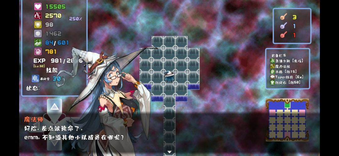 装备:急速之靴【先攻】/魔力法杖/木盾【防15】