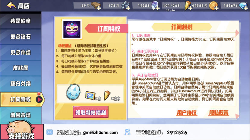 每天第一次进游戏是这样的。。。然后每个月总有那么几天会忘记去领那个订阅福利(心疼我的钱钱。。。我的建议就是能不能把领取订阅特权福利的红点移到主界面上,而且是要每天初次登录就坚挺的亮着的那种,对于忘性太大的我来说可太有必要啦