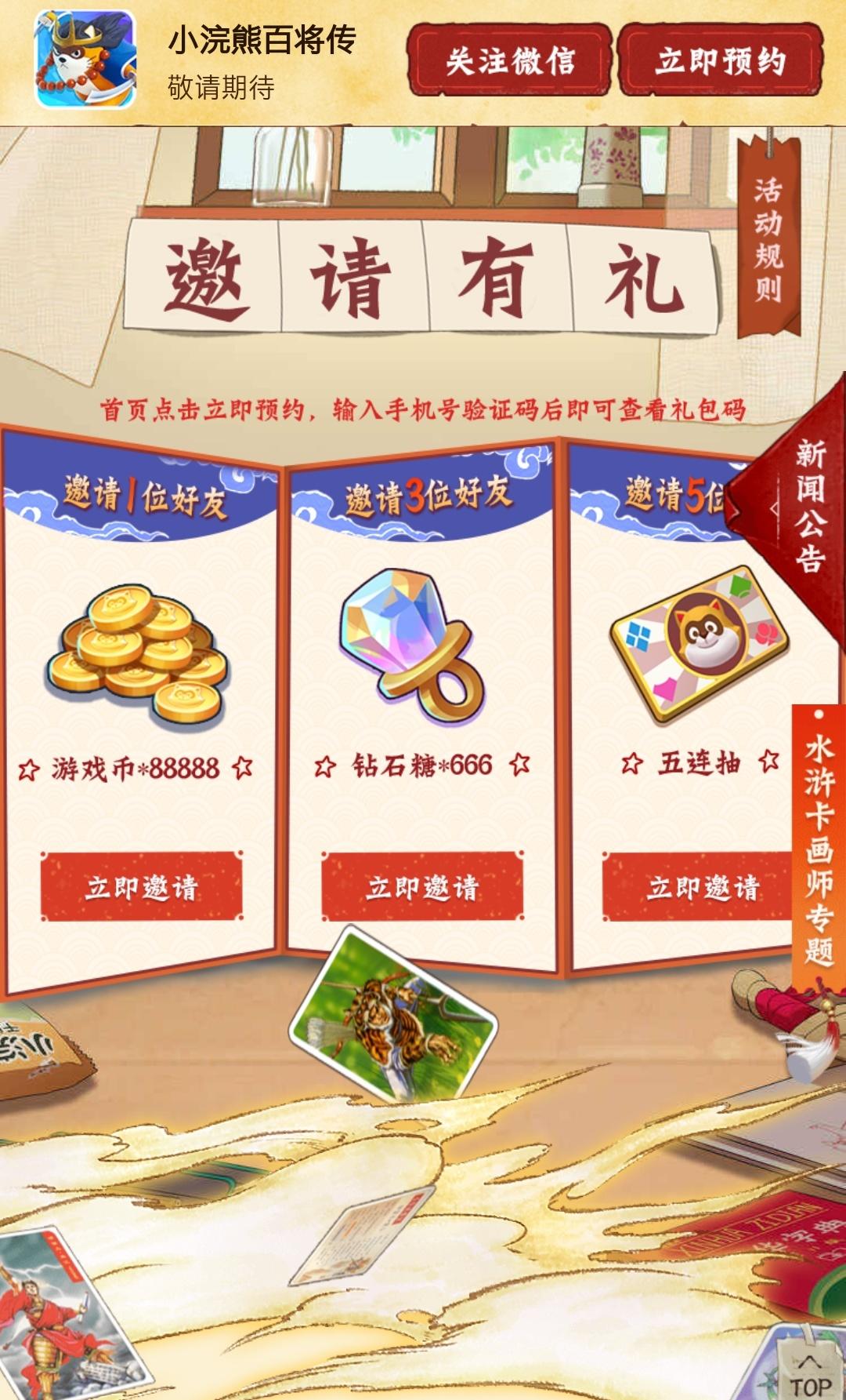 你的好友邀请您一起预约《小浣熊百将传》手游,快来与水浒卡爱好者在赛场上一较高下吧!
