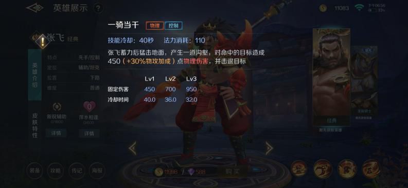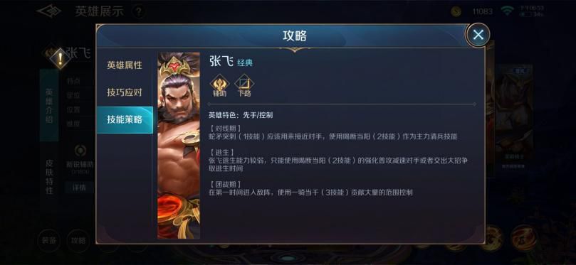 首先先来认识下张飞。张飞是一名辅助坦克。以下是张飞的技能以及打法策略: