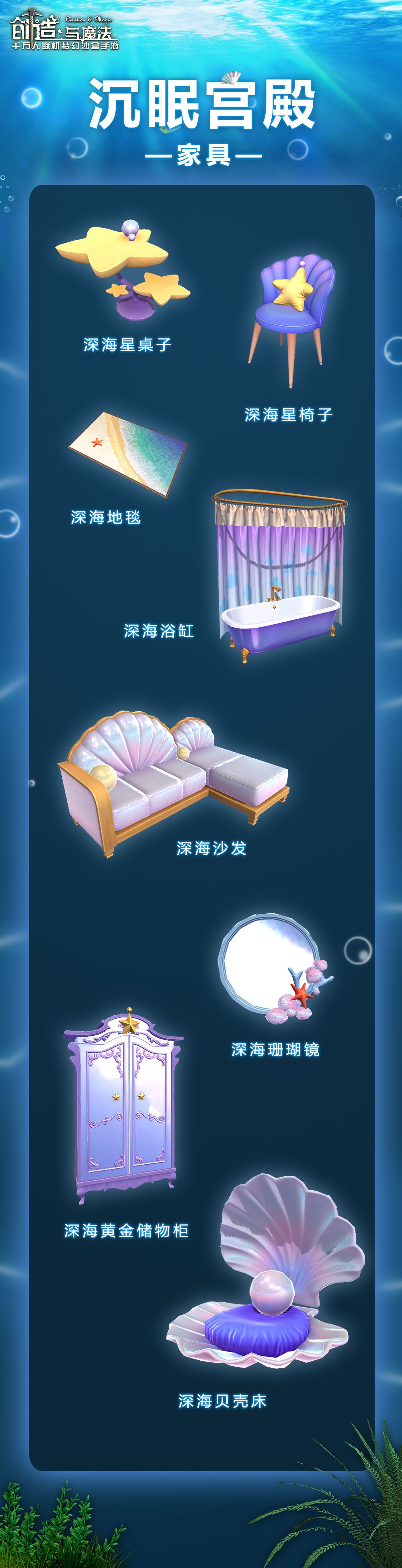 而本周,沉眠宫殿系列的其他家具建材也将上线小伙伴们不仅可以探索深海
