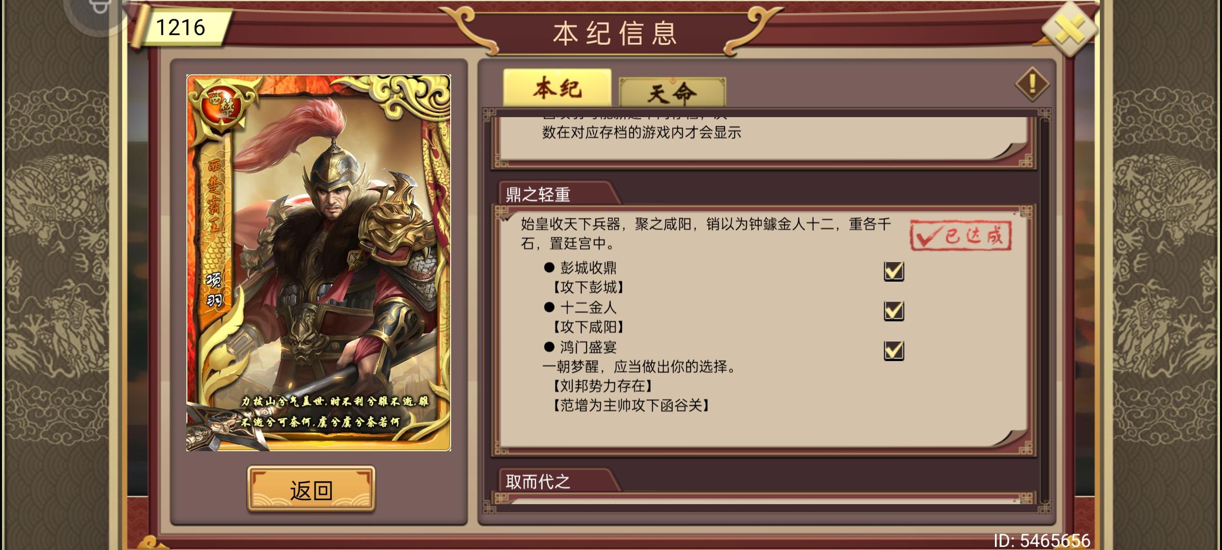 项羽本纪,回档后用范增打下函谷关不触发鸿门宴剧情,重开也试了,不触发鸿门宴
