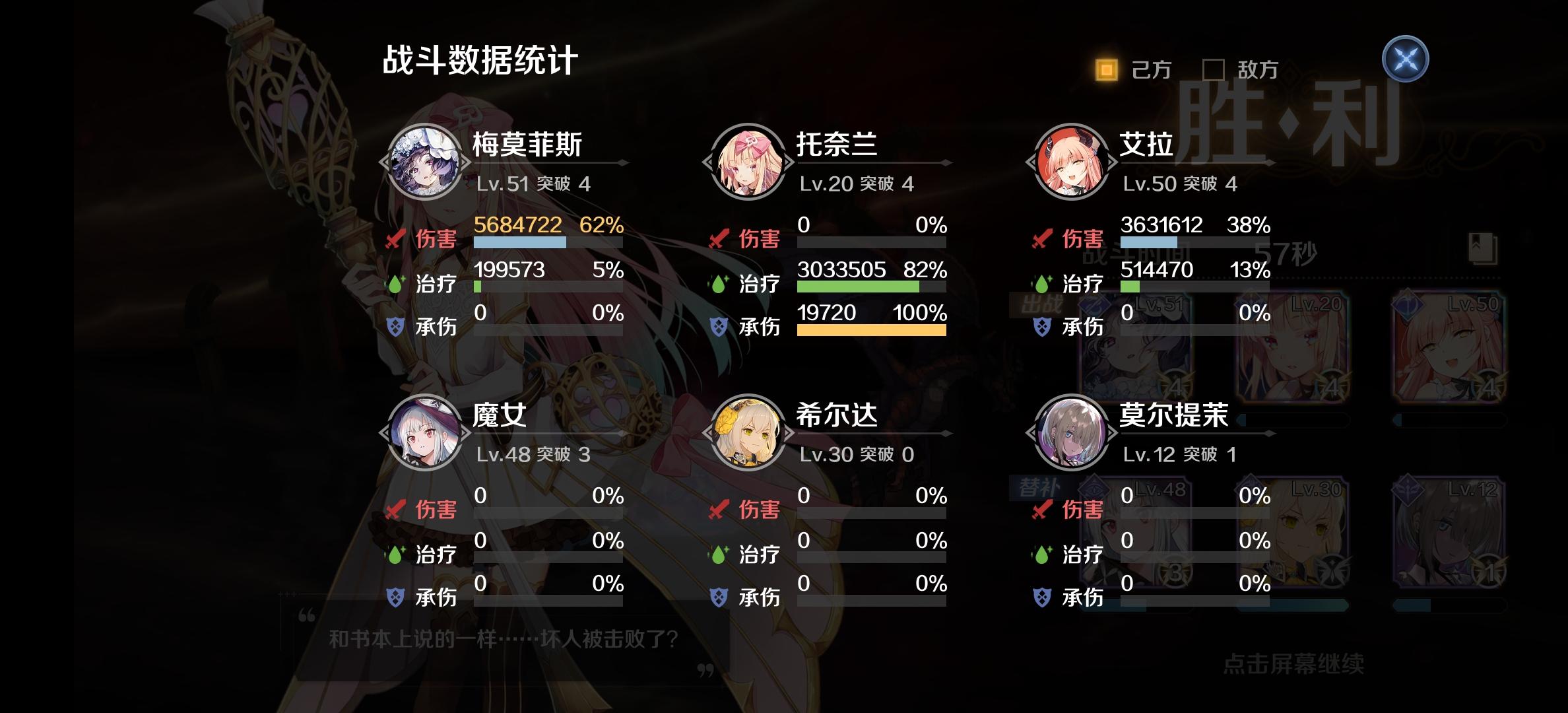 接上一条视频 这是练度和伤害分布 龙女属性跟面具差不多 1万攻5万血 暗奶只有6千攻