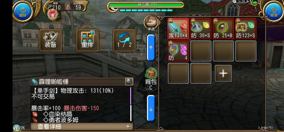 武器是这个,呜呜呜回游已经没有龙伏剑了,我好馋啊。不过好吧,反正就算赶上了我也没精力去开双孔,双孔噼里啪啦锤看着也更霸气,而且毕竟还比它强了25暴击(没卵用,单孔龙伏剑我也把这玩意换了)
