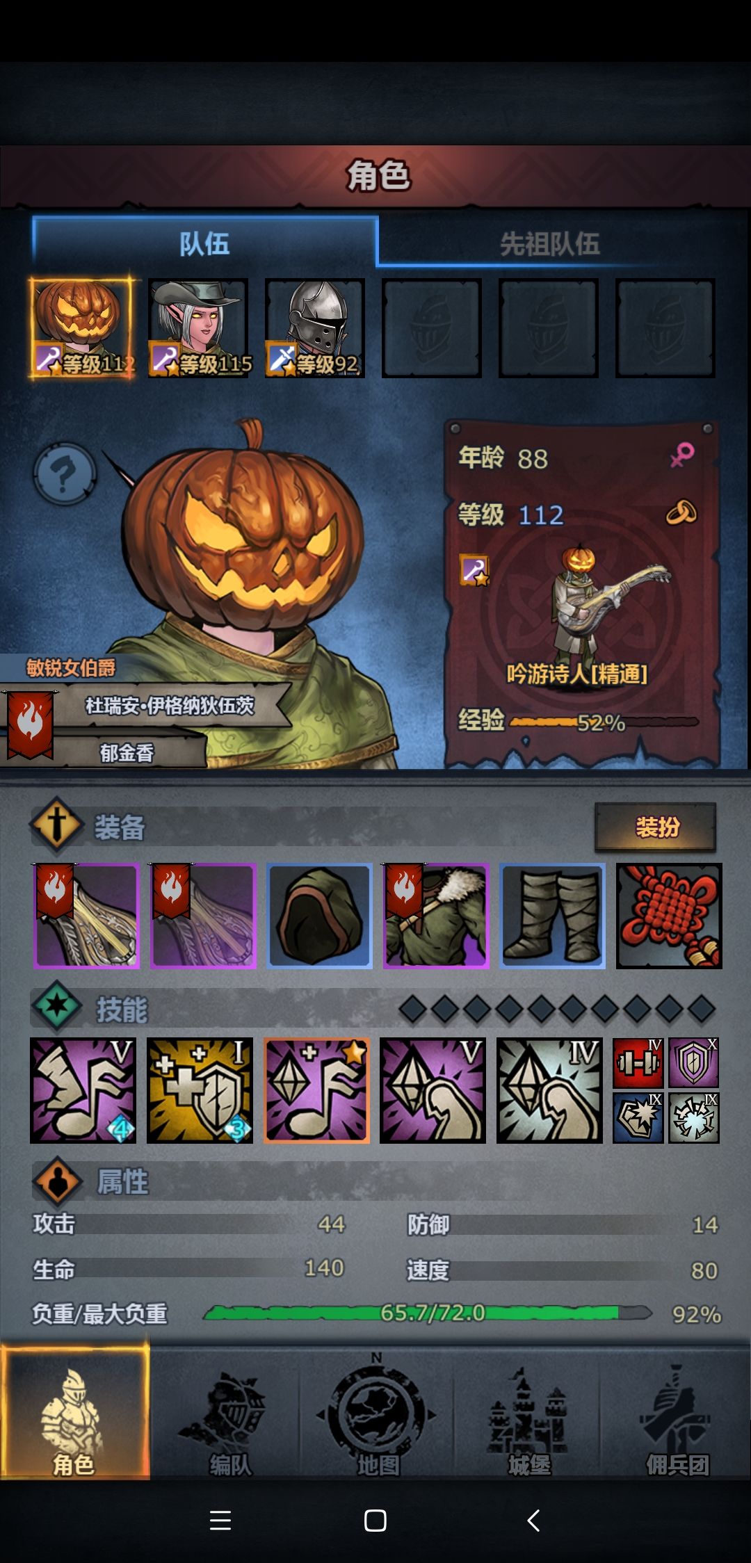 装备最好带一把铁匠铺做的,加移动的琴,可以不用拿蓝色的,白板装备也可以