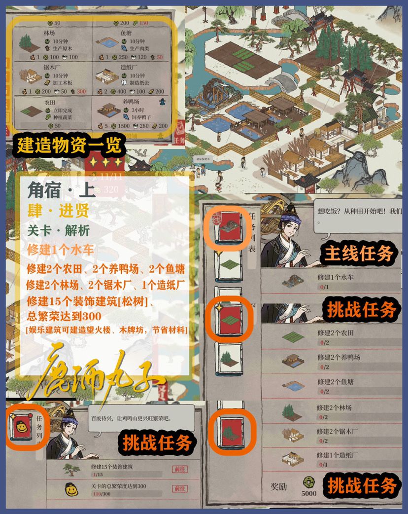 🌿角宿关卡所需物资:菜肴[超多超多,建议多个州府一起运,少量多次]、木板、蚕丝、原木、草药、丝绸、纸、布、瓷器、木炭、粘土