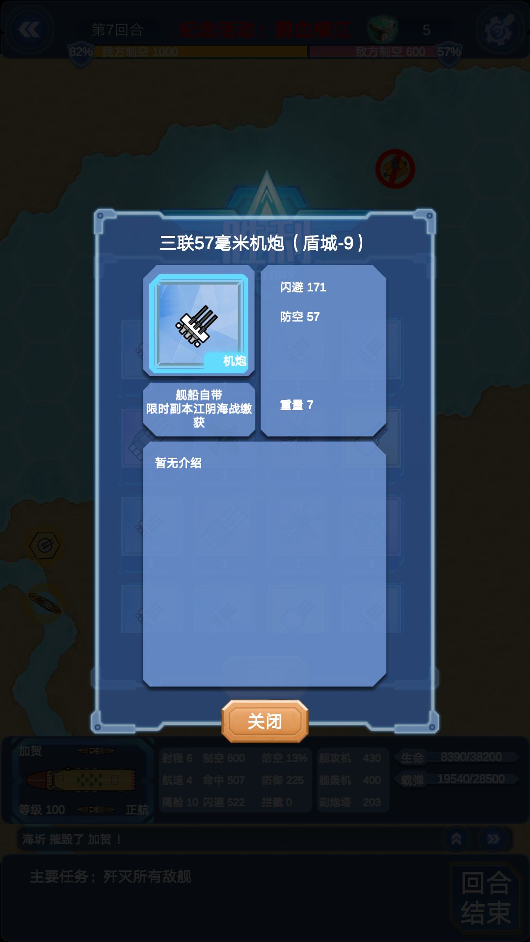 第三回合,所有船只全速前进(装巡海圻除外,先让她保持在敌方航母射程边缘),攻击敌方剩余护卫船只和轻航(加贺只有鱼雷、海圻、机场打得动,所以航母优先打轻航),但不要让阵型太密集。支援的两艘雷击舰招呼一下敌方装巡、航母(但不要把加贺秒了,不然直接结束游戏)。