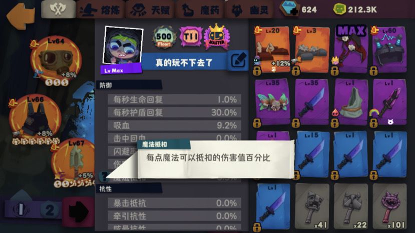 按照魔法血统这个公式。我原本3.3%魔法抵扣只要34点的蓝去抵消,魔法血统一开,我一次攻击要见34*0.2=6.4%。就是护魔衣开启魔法血统也开启 我每次收到伤害只扣6.4的血量就行了,为什么我护魔衣开启,魔法血统也点了就是直接暴毙? 你要么在护魔衣备注与魔法血统冲突 要么备注只消耗蓝量!魔法血统开启护魔衣技能失效。还有很多装备也需要这些详细化的介绍,不然怎么会有人花心思去开发新套路,我是真喜欢这游戏 所以头一次长篇大论,希望这游戏越来越好也有看到你们的付出但也不能总是bug
