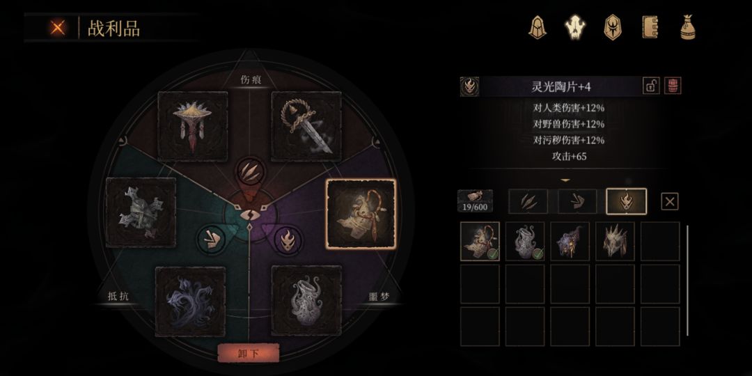 1级通关,最后boss前父爱 5,狂沙 5,灵光陶片 4