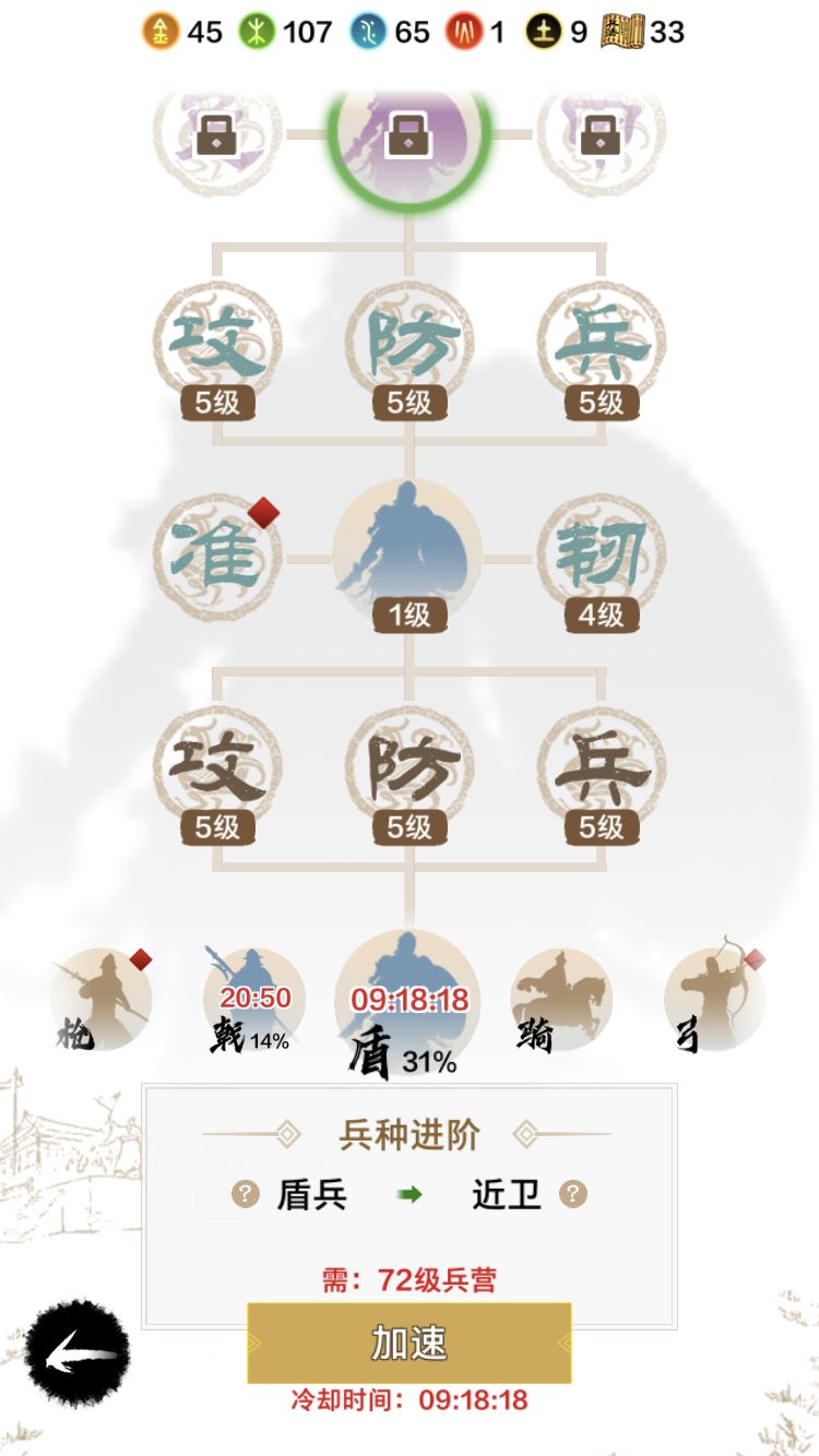 此处兵种进阶理应是从由重盾—近卫,其他兵种也皆如此。