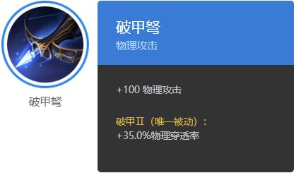 优势:高额物理穿透、几率减速、小件强力、合成平滑、基础属性全物理系英雄通用。