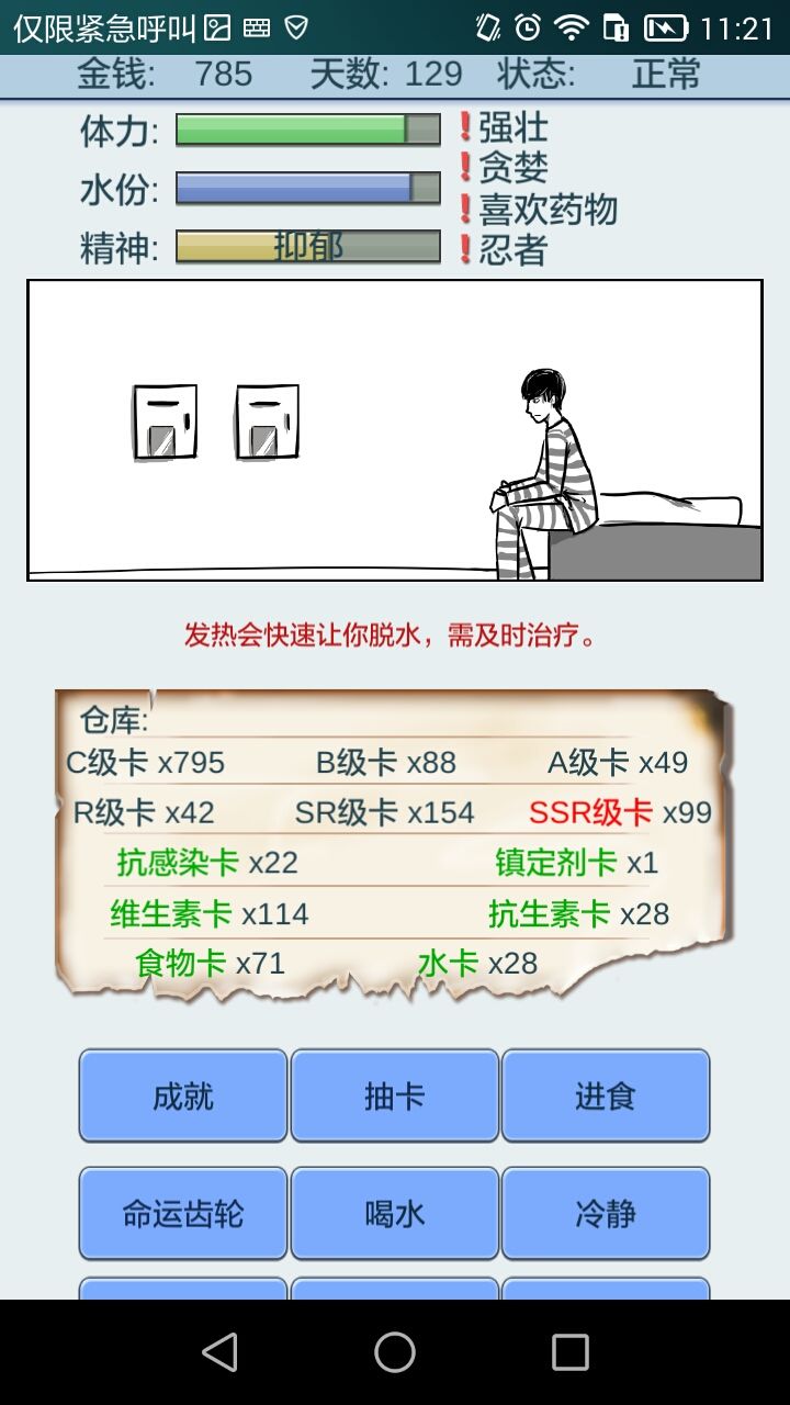 好像体力和水分多的时候精神减的更慢,注意喝水吃东西再抽会舒服很多,药类每个2张就行了,精神处于不多不少的状态比较好,交换卡片基本看三高,缺啥换啥。在体力水分多的时候抽生存会好很多。我的齿轮大概是6、7级左右