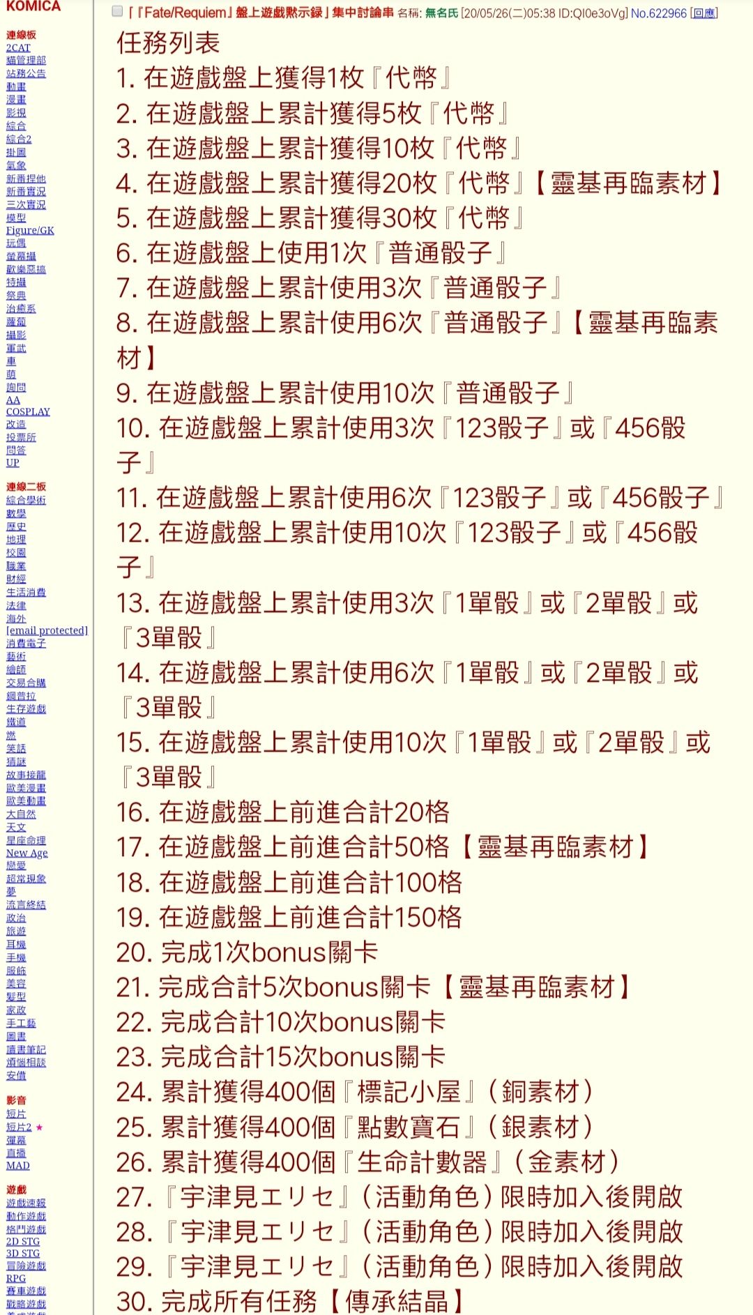 『Fate/Requiem』棋盘游戏默示录任务列表翻译(持续更新中)