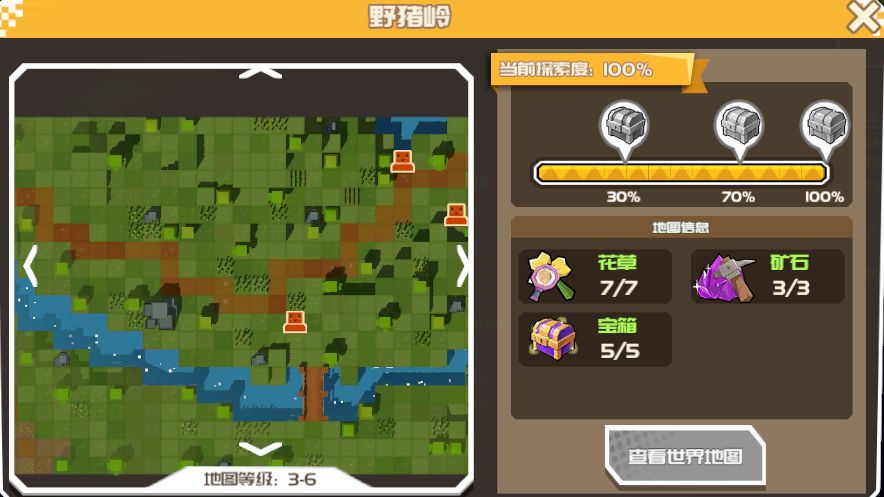 也就是玩家每到一张新地图,我们会让玩家知道,地图上有多少宝箱,多少采集物,但是具体位置不会告诉玩家,根据玩家的发现探索程度,给予不同的奖励,从而鼓励玩家去发掘整张地图的秘密,但如果玩家不想探索也不会对游戏进度有任何影响。