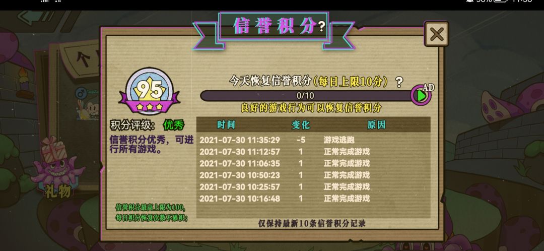 然后就因为这样扣我信誉积分,我只想说游戏问题,为什么让玩家来买单?