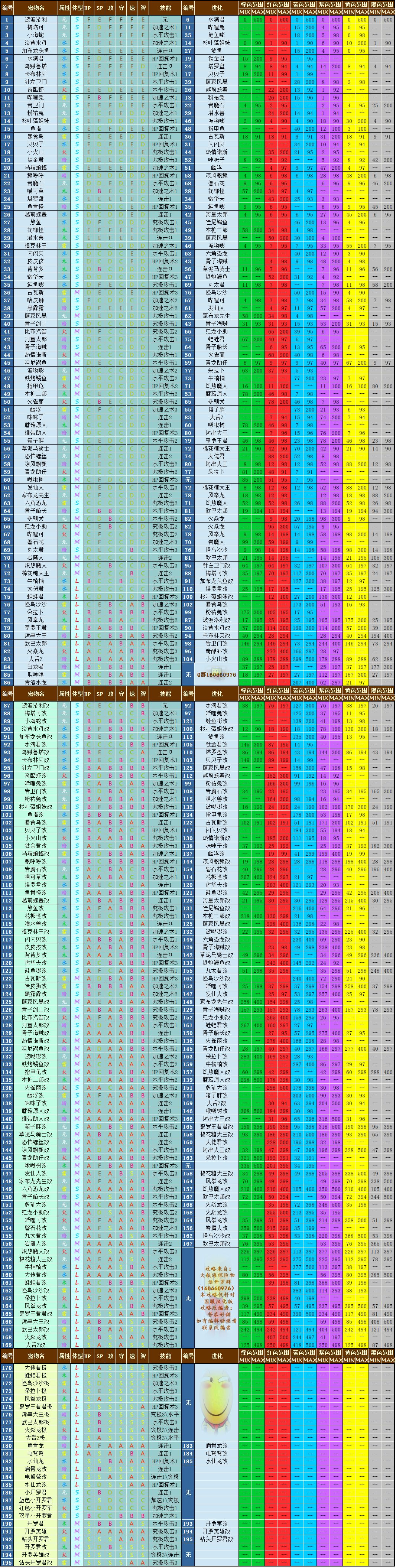 推荐看退化表,倒推算出1级宠物很实用