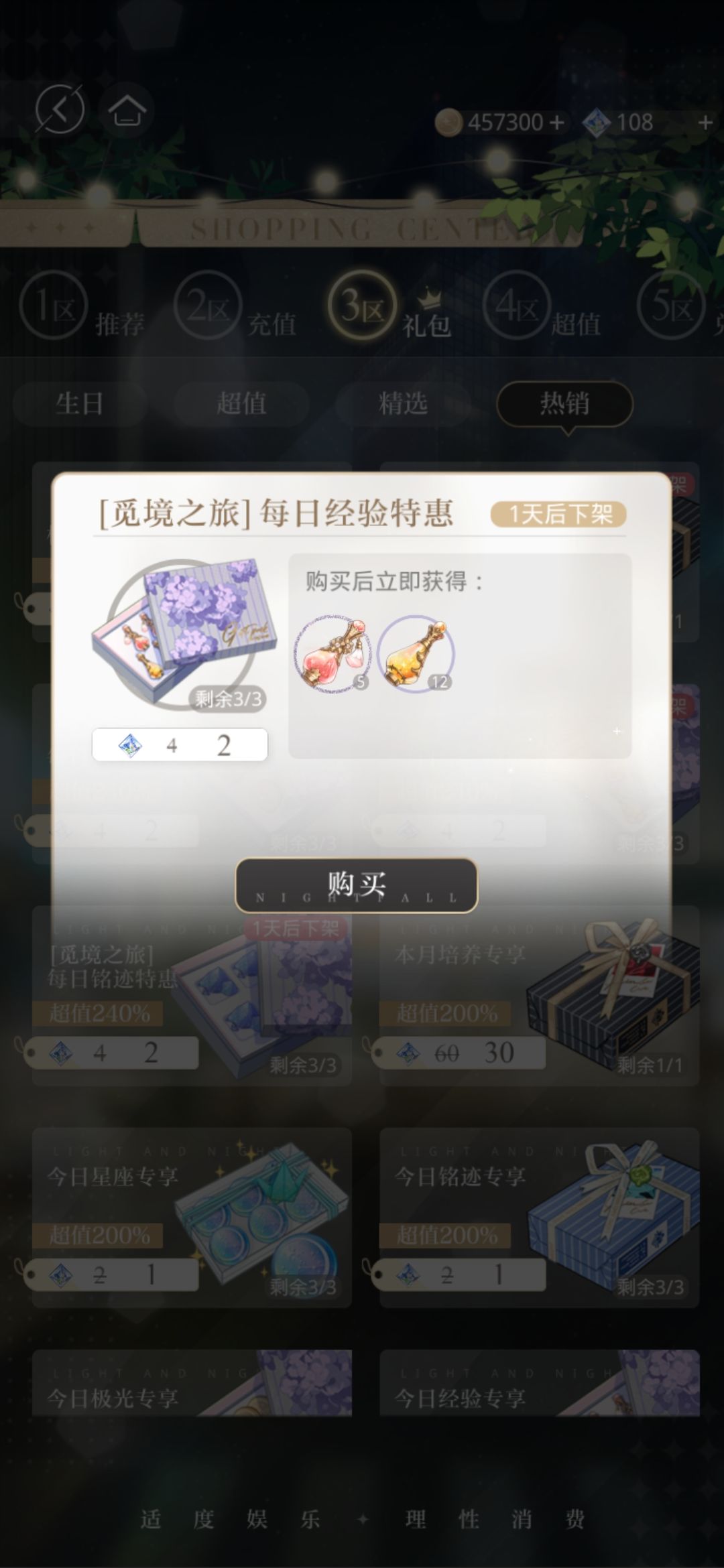 所以说,每次活动礼包仅含有极光币,眩光沙砾,灵犀经验时,先对比一下性价比。有的礼包还不如直接打遇见副本来得值。