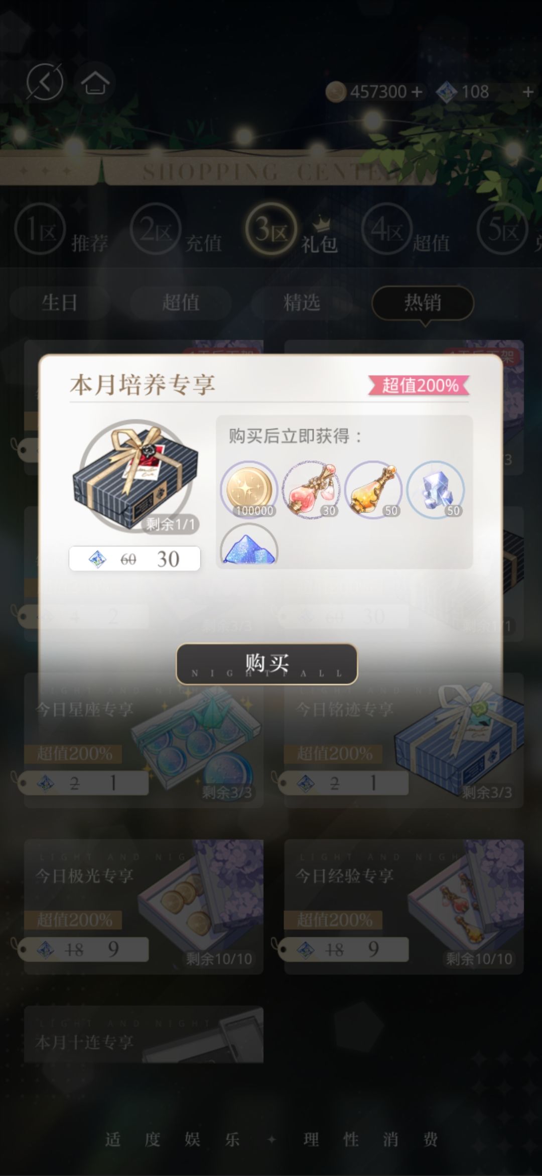 但是要注意一点,商城有的礼包里有稀愿珍宝,这玩意中后期啥用没有,所以礼包里这个东西应该忽略不计。