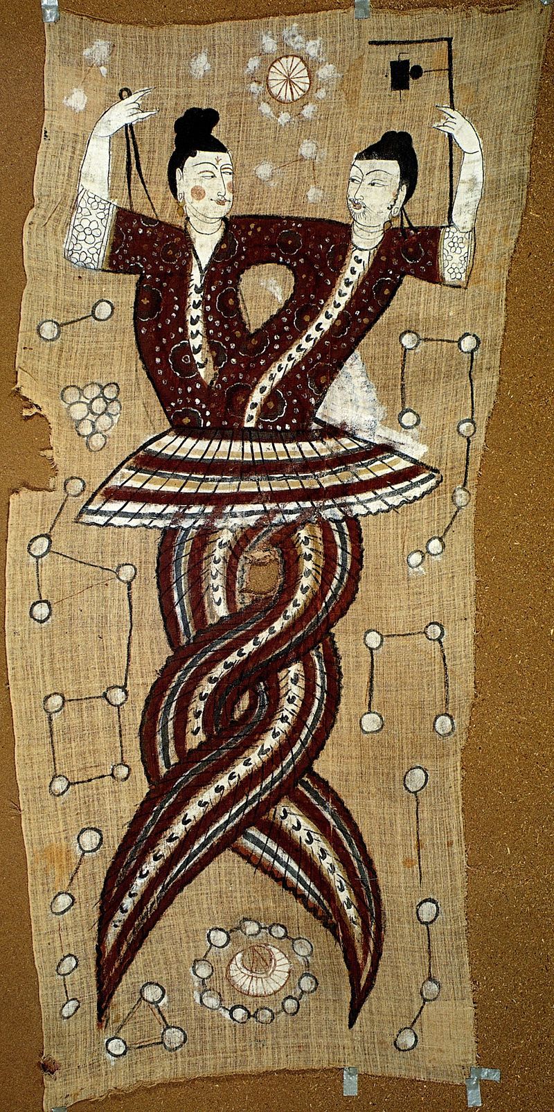 新疆岀土的人首蛇身女娲伏羲图,不但是女娲,伏羲也被古人认为是来自于天水(图片来源:维基百科)