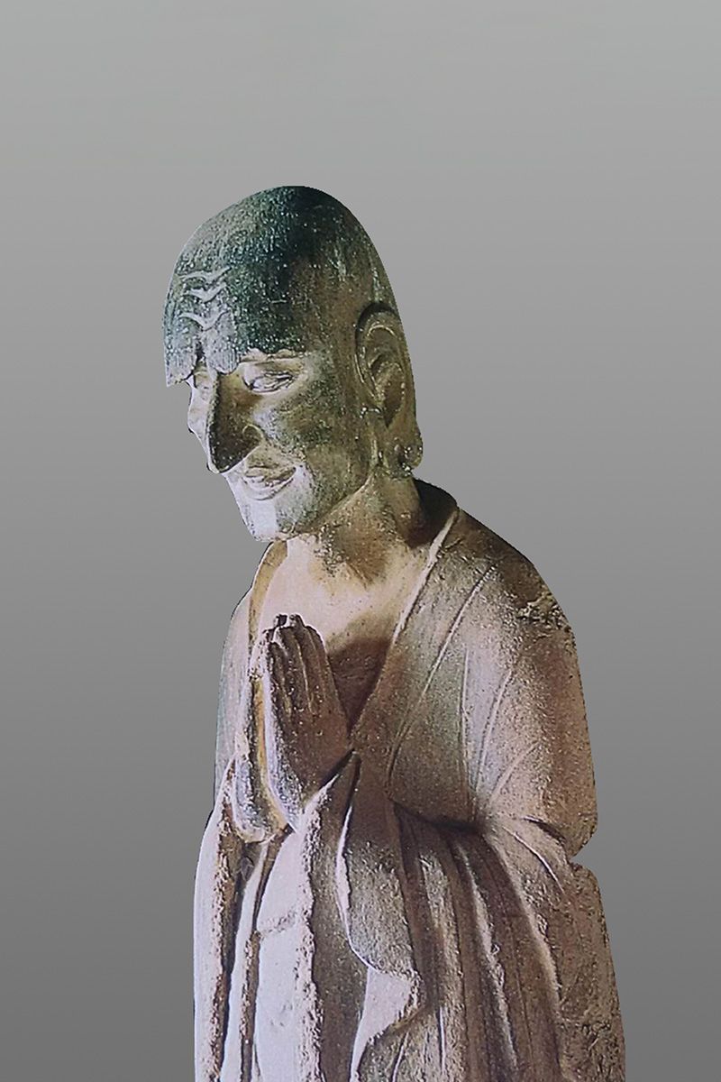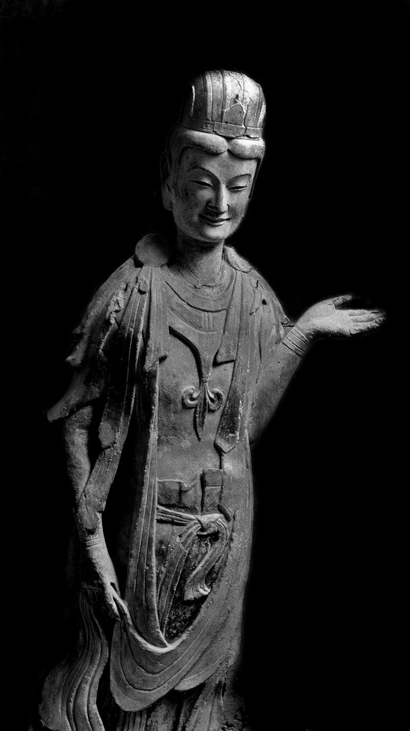 87窟的迦叶立像现在已经移入文物库房,迦叶是释迦牟尼的大弟子,唐僧(金蝉子)的大师兄,大多以苦行僧形象示人,而麦积山石窟这尊却是神情安详、沉稳佛像的造像理念主要来源于天竺(今印度)的“三十二相,八十随行好”。在佛陀庄严的色身中,显而易见、一目了然的特征,称为“相”,共分三十二种,叫作“三十二相”;细微难见,不易查觉,而能使人生起欣喜爱乐之心的,即是“好”,共有八十种,叫作“八十随行好”。简单说来,“相”即是佛像的形,“好”就是佛像的神。形神兼备便有了佛像的超然物外之感。