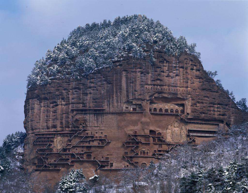 麦积山位于甘肃省天水市,是小陇山的一座孤峰(小陇山即是中国古代文学中声名显赫的关山),高142米,整个山崖拔地而起,因形如农家麦垛而得名。