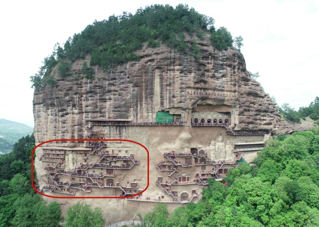 麦积山地处秦岭,位于长江流域与黄河流域的分水岭上,山区降水频繁,湿气久不散去,就容易在雨季形成“麦积烟雨”这种缥缈的景致。