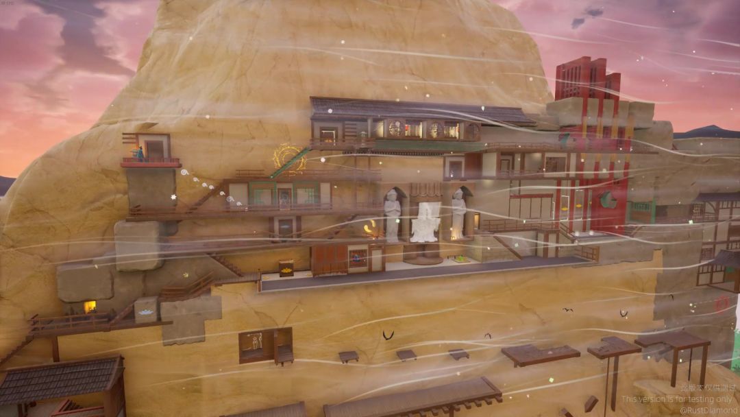 《藏梦》中对于栈道最大利用主要集中在第二章的最终谜题,基本上是在图中所示栈道的结构基础上进行的关卡设计,虽然这给解谜设置了一定限制,但我们希望极可能地还原这座空中佛阁的结构美感。毕竟,无论这石窟还是栈道都凝结着无数古代无名工匠的大部分人生。