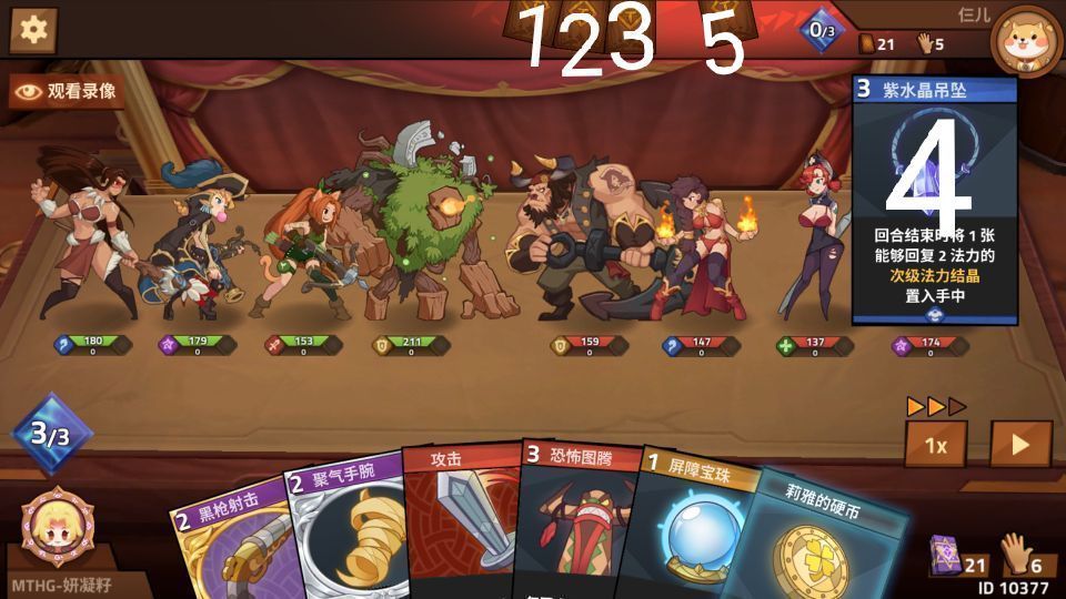 比如对面黄色用过了三张技能卡,那我的疲劳就可以给其他人。还有一种方便记普攻的办法,就是看对面的能量来推算,比如第一回合结束30能量,那对面就是用了一张普攻,这30能量来源于攻击卡20能量和回合结束10能量