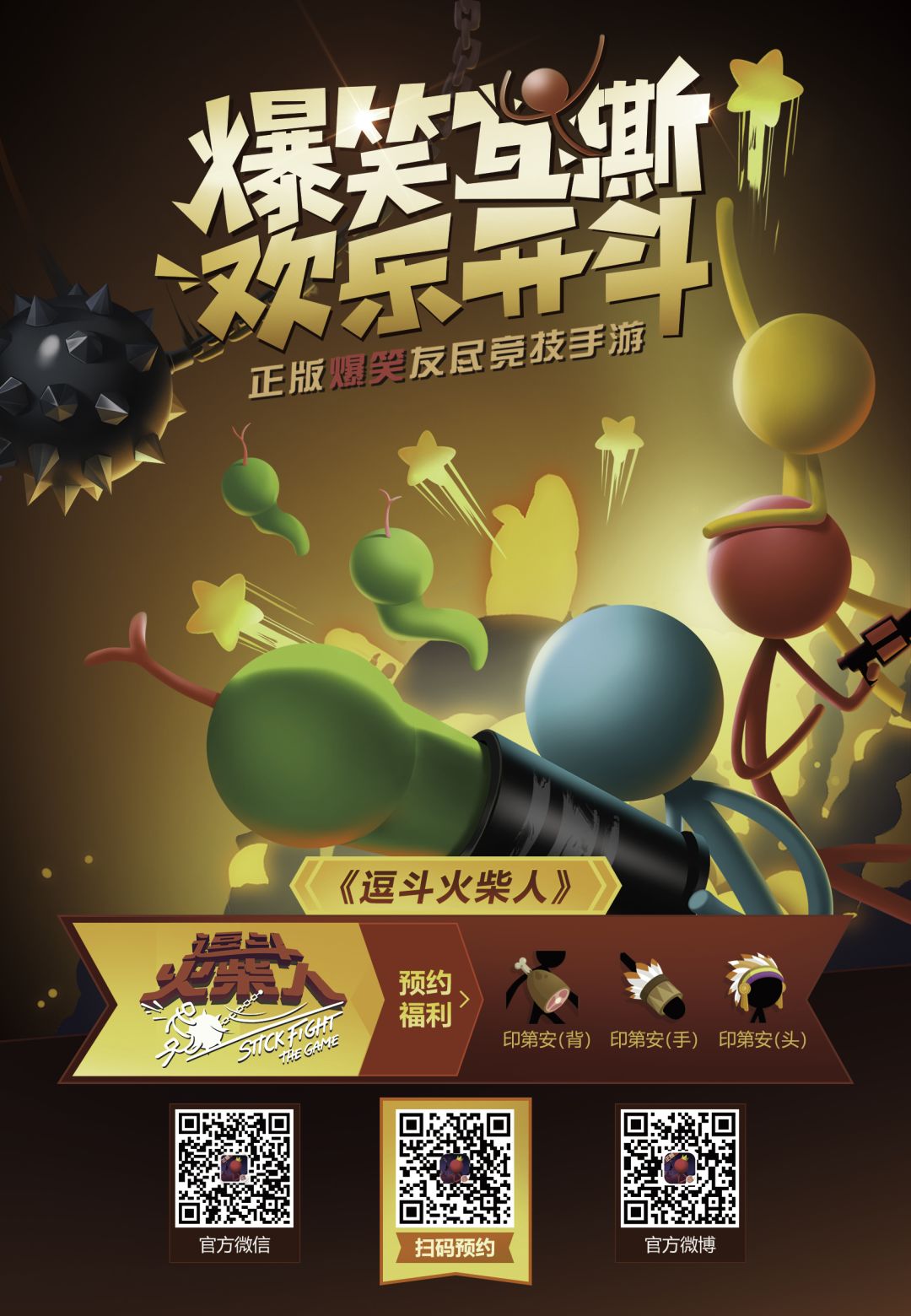 【更多福利】本次China Joy活动将持续举行,现在就扫描二维码或点击左下角阅读原文,预约《逗斗火柴人》吧,现在预约游戏即可获得专属预约福利印第安时装三件套(印第安(背部)印第安(手)印第安(头))。