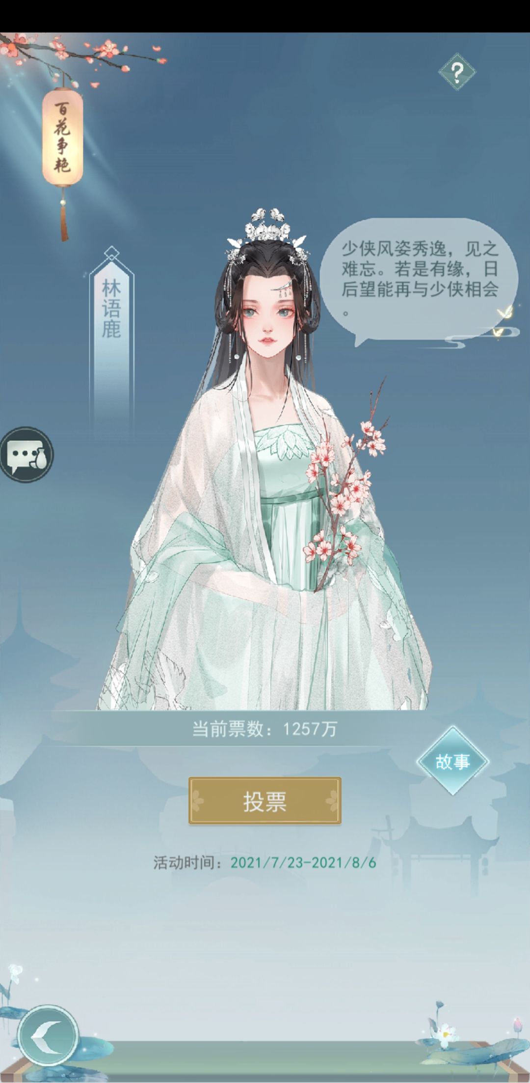 “少侠风姿秀逸,见之难忘。若是有缘,日后望能再与少侠相会。 ”初次点开甜甜的少女音搭配着略带夸赞的言语,外加一身淡雅的装扮,好似她的名字,如小鹿般灵动跳跃,一副邻家调皮小妹妹的即视感。