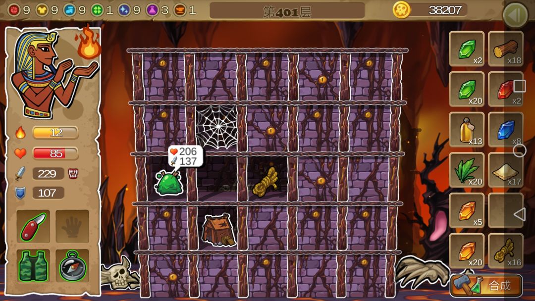 80关前不需要动用吸血卷轴打自爆怪 用回复卷轴苟住攒资源 所以80关前红宝石够就合成属性石头