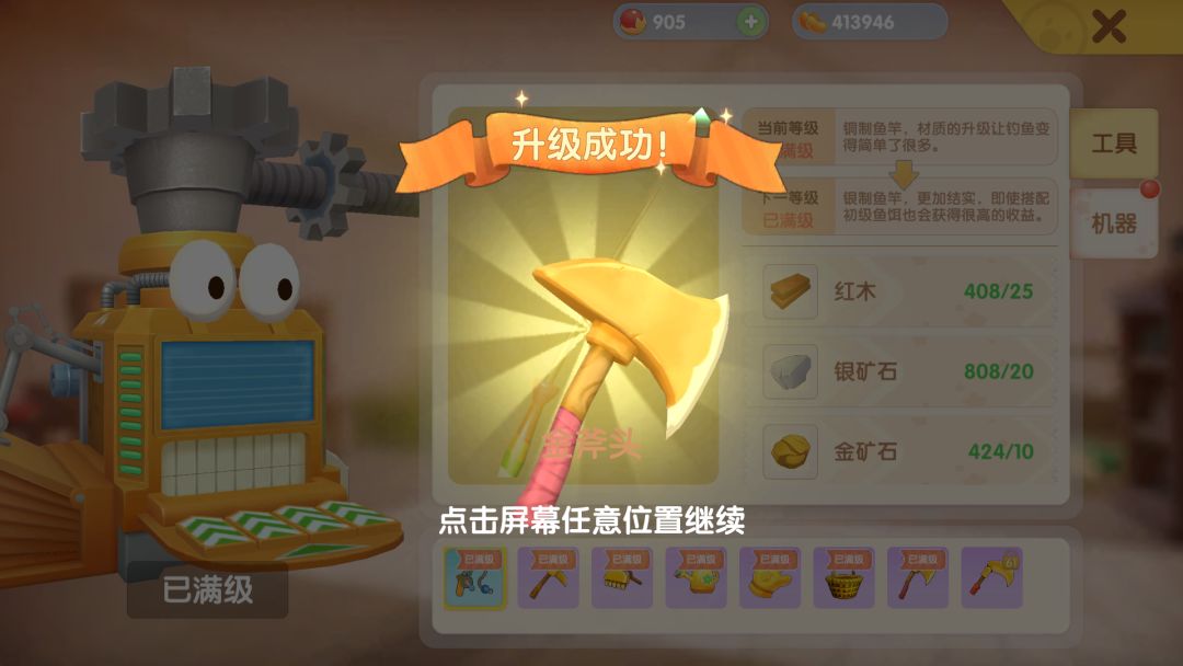 今天农场主升完58级之后直接弄了金斧头(图1),兴冲冲地跑去处理树桩的时候误操作切换到了一级斧头,然后竟然发现一级斧头在金斧头的加持下可以砍树桩了。(图2,用户信息已隐去)