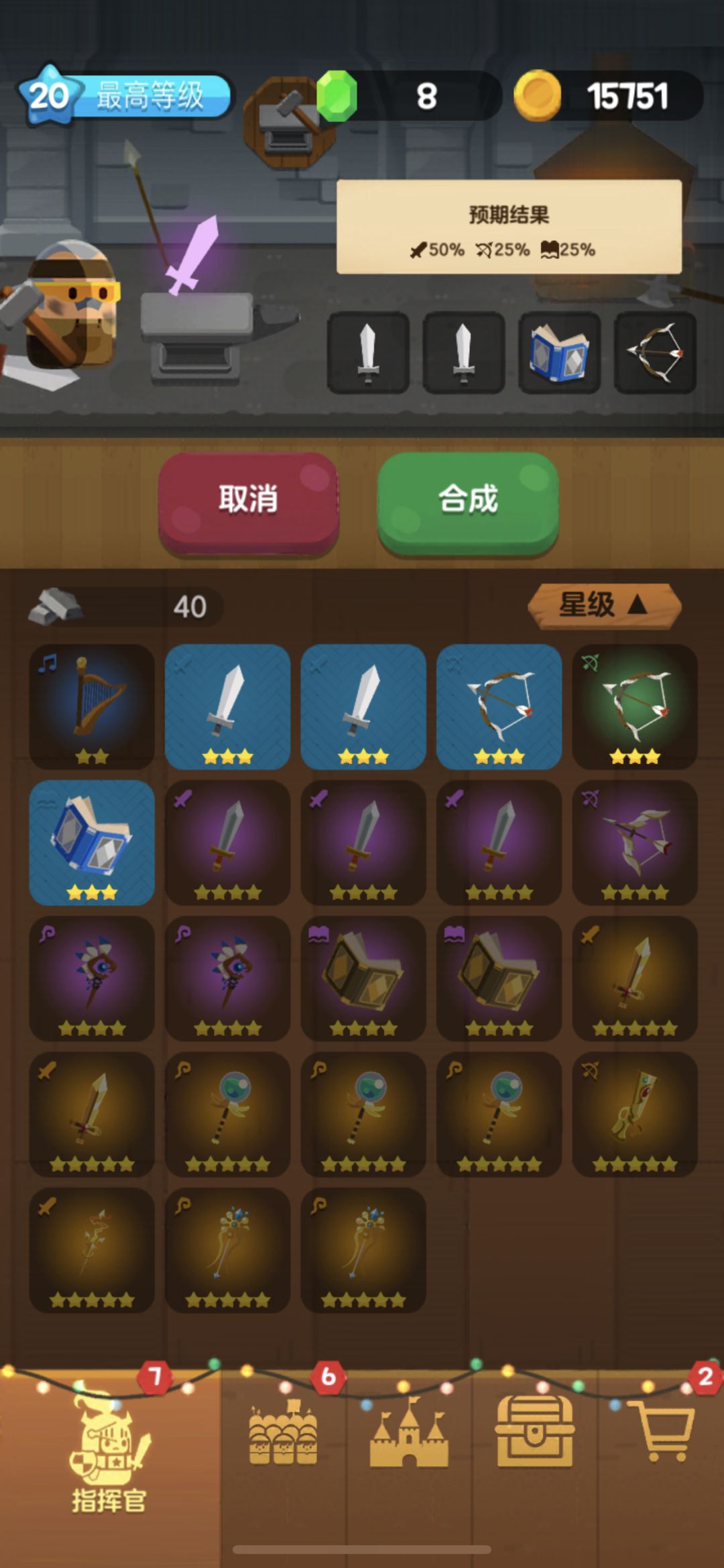 同样的方法我们继续合成了一个4星的剑。为了保证成功率,不出任何意外,在最后4合1专属的时候,我们用的是4个4星剑。