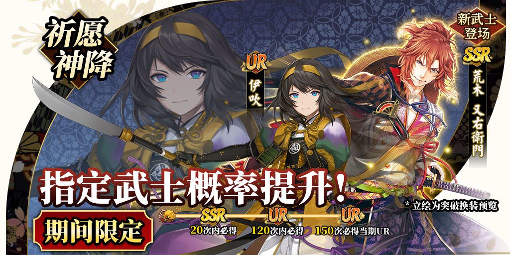 4)150次神降后可额外获得当期特选UR武士!(仅限1次)