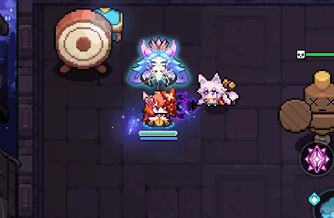 (紫技能位移到怪物脸上使用橙技能打开下水道的大门召唤地沟油攻击敌人)