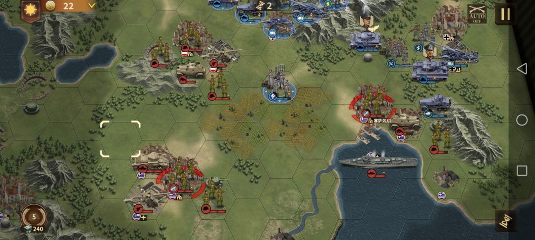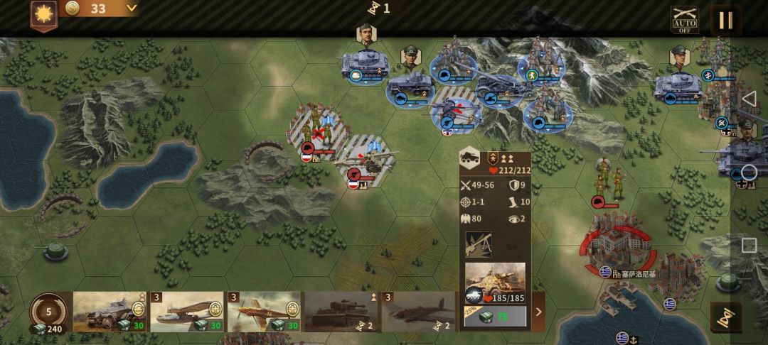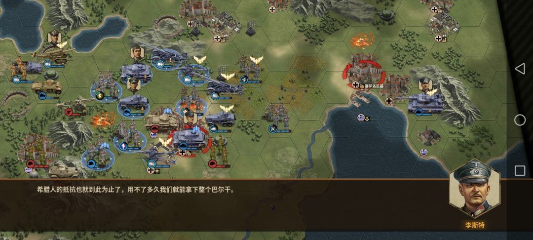 支援的部队我的建议是开局要个步兵,然后打完开局前面的这个小城出个火炮,最后打完约阿尼那出那个装甲车,不过萌新也可以,不用完全按照我这样来,自己需要什么可以根据自己的理解来要,就比如说攻打约阿尼那时就差一丝血就能把那个守城的兵灭掉了,就可以选择用战斗机,一句话要懂得灵活运用