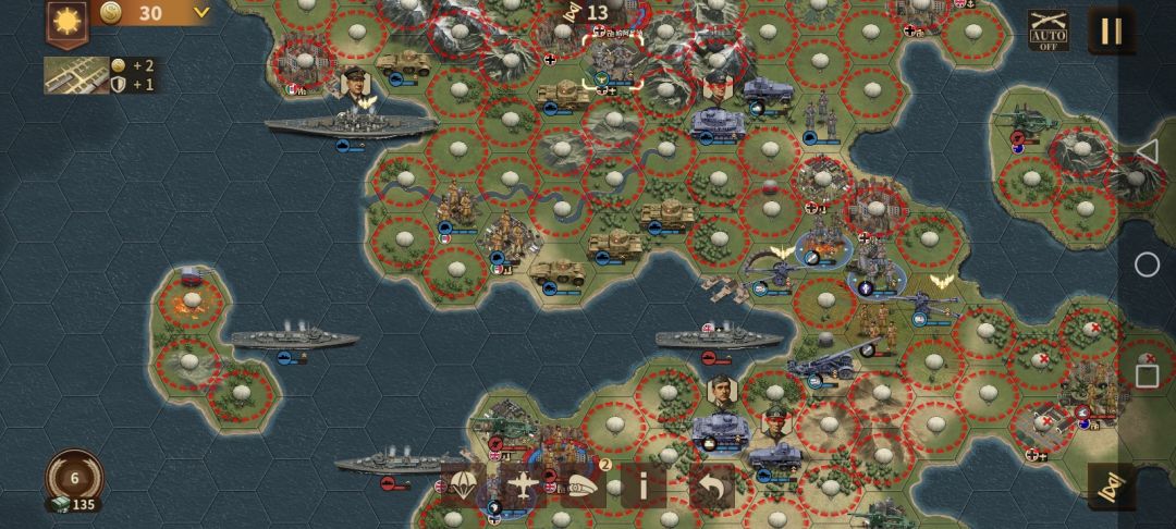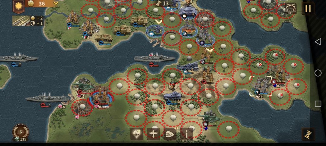 另外下面可以灵活选择运用火炮和装甲部队配合伞兵以及空军来快速结束游戏