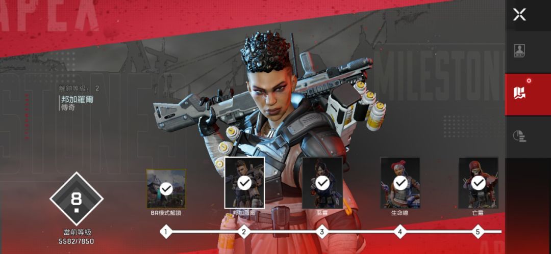 成长之路会随着各位捍卫者们的等级提升而逐渐解锁,每提升一级即可获得一个奖励,其中玩家可以在Lv2~Lv8依次解锁班加罗尔、恶灵、命脉、亡灵、探路者、直布罗陀这6位英雄,快速扩展英雄池;