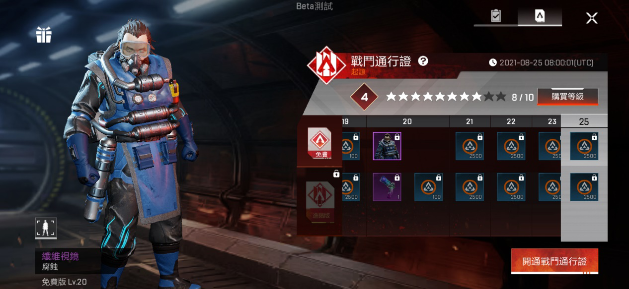 本次测试开放了战斗通行证功能,战斗通行证奖励分为基础版和进阶版;其中基础版的奖励可以直接领取,而进阶版则需要388金币解锁(是首次登陆时赠送的数量,建议直接拿来解锁)。