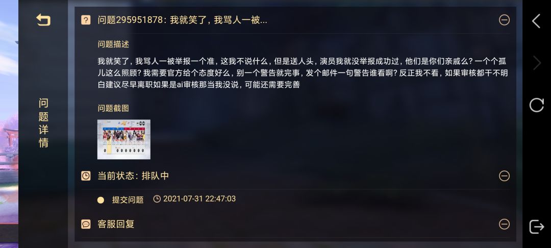 但是你们官方是不是应该管一管,送人头和演员,阴阳人我就不奢望你们管了好吧,别成天死扣个禁词不放好么,审核是人还是ai?人就带点脑子好好判,ai就抓紧更新换代下 OK?