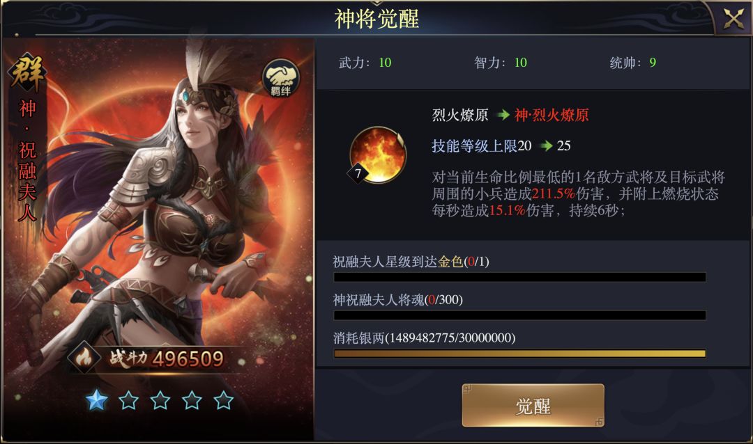 神将觉醒功能主要提升武将的属性,武力、智力、统帅都能得到提升,同时技能突破固有上限。