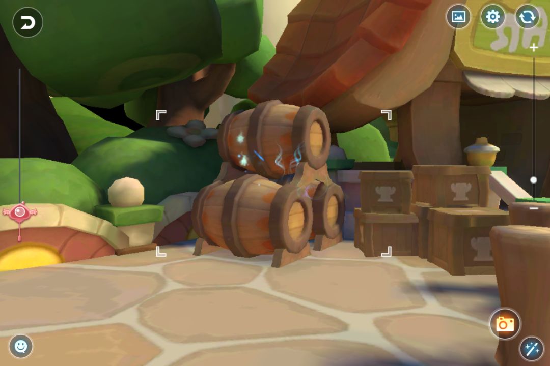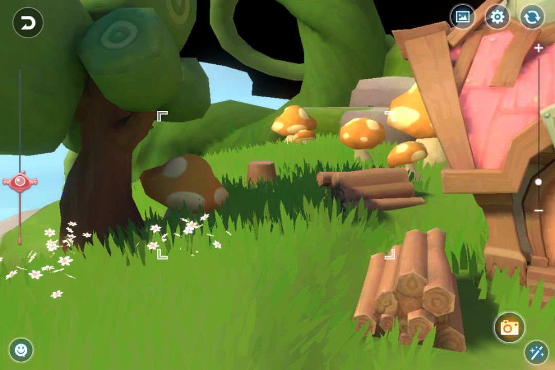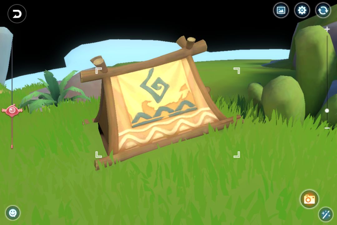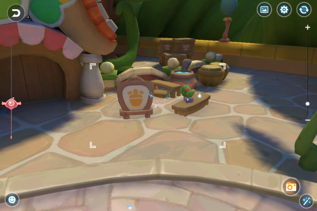 →去百宝屋购买美化美学木方、广场巨无霸、简朴休憩、爱的门牌号、迎客菇、篝火营帐;还剩两个美化没材料买了;分别点击使用
