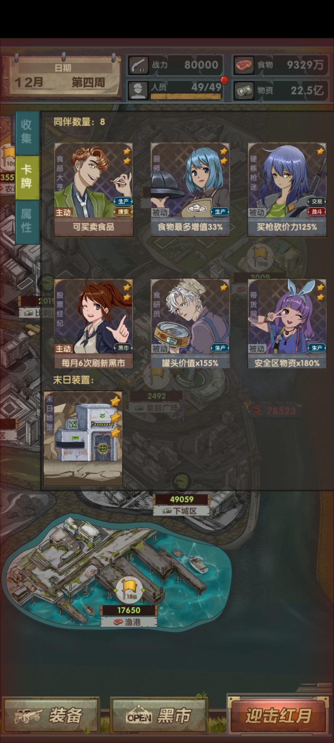 前两个月还好,问题不大,六七月的时候食物几十万,战力不到一千,打不过红月,只能忍痛割爱,用最便宜的单枪打“投降”,人数-1,枪-1,其他苟活到下一月。