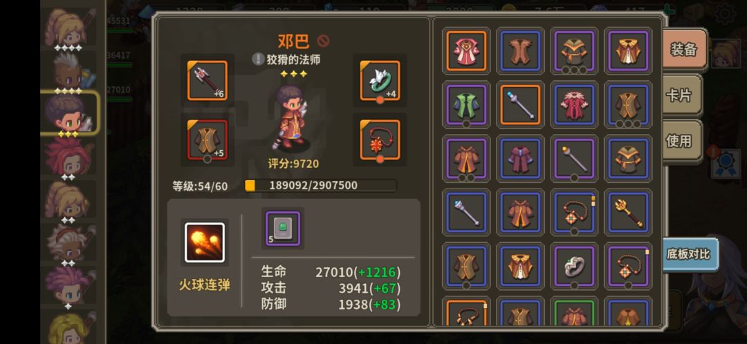 总体思路是火球法师有优秀的群体单体输出能力,而且3个职业中卡片效果最好,25概率多重施法。打boss压时间3个雷击左右能解决战斗。